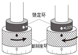 按照圖的箭頭指示 方向旋轉鎖定環(huán), 可以設定扭力值 | 鎖定扭力值后,鎖定環(huán)的白點歸零位置與副 刻度環(huán)的紅點重合就可以固定扭力值。 |