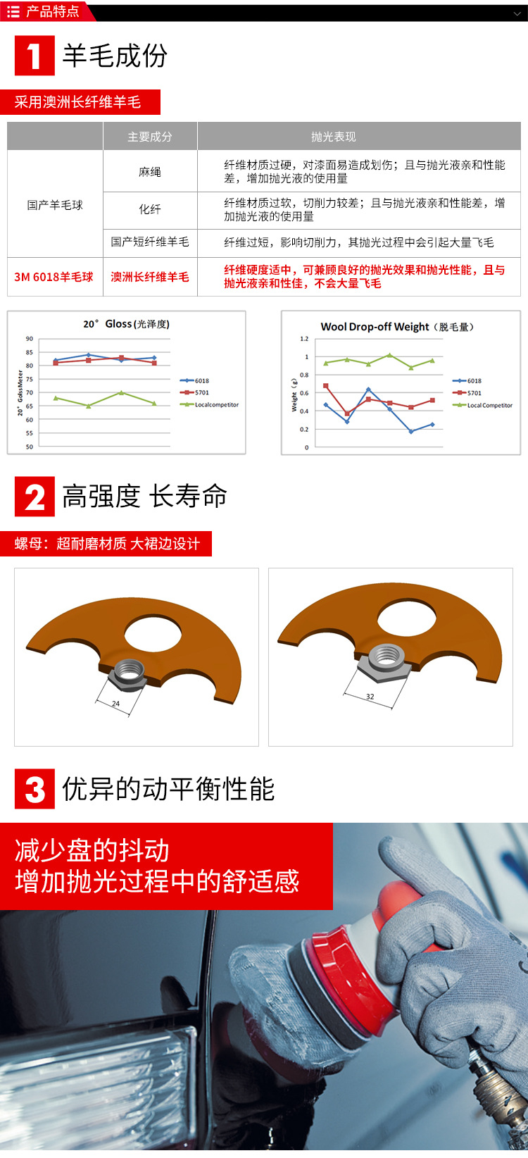 3M 6018雙面羊毛球3寸羊毛盤拋光盤拋光球