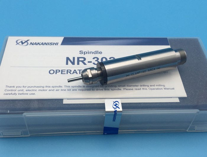 • 日本NAKANISHI高速主軸NR-303,轉(zhuǎn)速可達30000轉(zhuǎn)/min,精度2μm以內(nèi),可與氣動馬達配套成為氣主軸,也可與電動馬達配套成為電主軸。兩種搭配方式用于不同的加工。