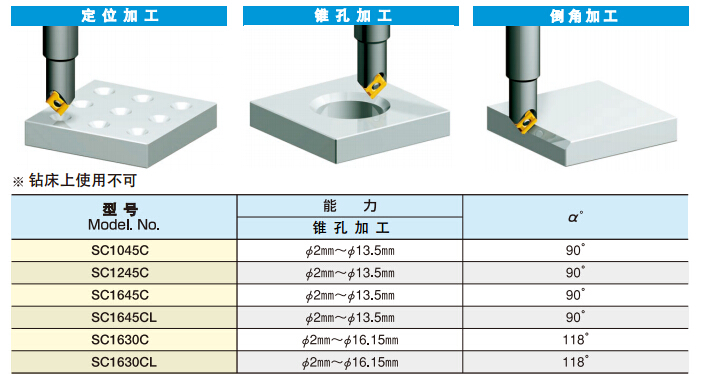 中心鉆兼倒角刀,節(jié)省了工具更換裝置的工序,提高生產(chǎn)效率。