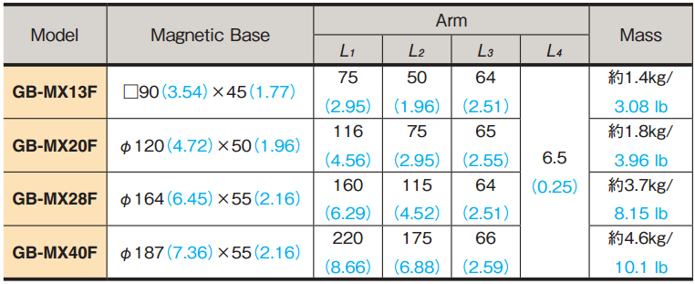 提供了光滑的石頭表面上滑動端測量工作。機械手臂(MB-MX-F)具有良好的機械鎖與可靠性。一個旋鈕收緊所有可調(diào)位置。