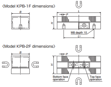 • "2F"系列的磁塊兩面均有獨立的磁力開關(guān),磁塊的開關(guān)面也可以用來固定工件.