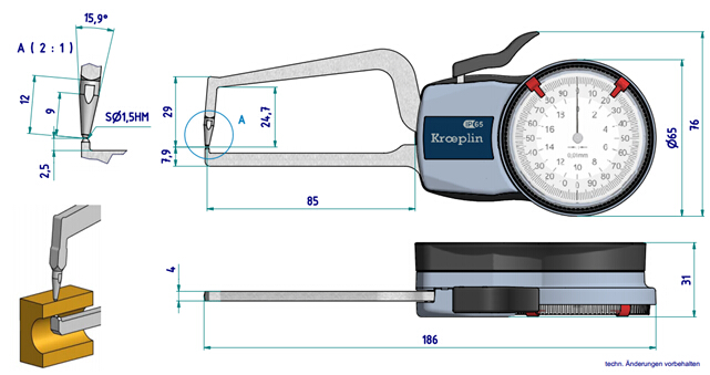 • 德國kroeplin帶表外卡規(guī)D2R20,壁厚卡規(guī),測量范圍:0 -20 mm,精度:0.01mm,喉深長度:85mm。