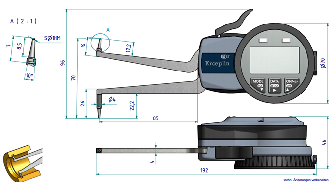 多個數顯設定功能: 絕對和相對測量, 上下限超差顯示等。