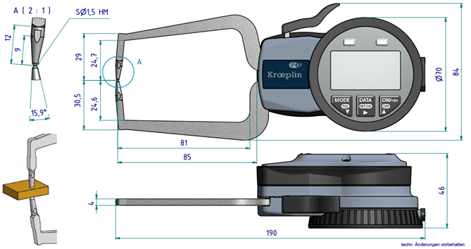 多個數(shù)顯設(shè)定功能: 絕對和相對測量, 上下限超差顯示等