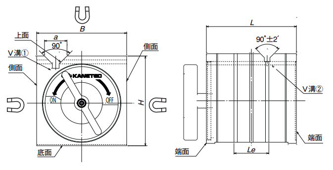 磁性塊有三面可以用來吸著工件,包括V槽面和兩側(cè)面.