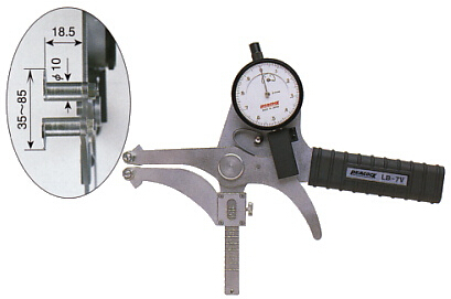 孔雀peacock帶表內(nèi)卡規(guī)LB-8,測量范圍10-120mm,測量精度0.01mm.測定喉深90mm,指示誤差±0.03mm,測頭高度2mm.春亨工具代理品牌。