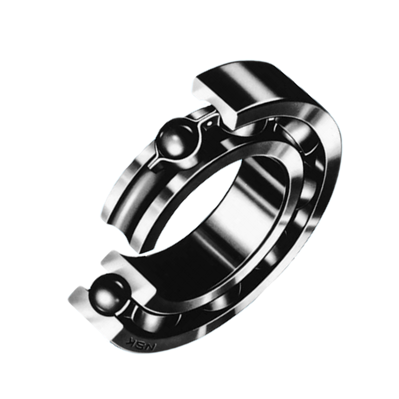 (1)滿球軸承,由于在內(nèi)圈及外圈上設(shè)計了填球口,可比深溝球軸承多裝球。因為有填球口,所以不適于軸向載荷大的用途。另外使用軸承時,盡可能將外圈的填球口位置只作為非載荷圈。保持架為沖壓保持架。