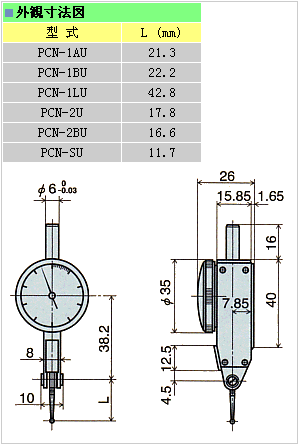 PCN-2U千分表,孔雀杠桿表,進(jìn)口千分表
