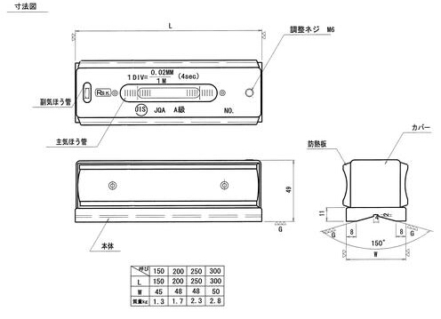 • AA級、A級、B級都是依照JIS B7510規(guī)格制作及檢查。 A級氣泡管精度保證在±0.5標(biāo)準(zhǔn)以下。(0.02mm) 0.05mm和0.1mm也能保證在±0.3以內(nèi)