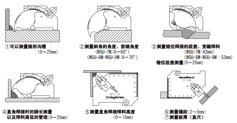 特長:可以測量板材的厚度、焊接時焊料的寬度、圓形物以及增加了鋼筋等的壓接時隆起部分對應國土交通省