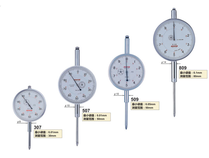 孔雀peacock大量程百分表,主要型號有307,507,509,809這幾個型號。測量范圍:30mm、50mm、80mm這幾個規(guī)格。春亨工具一級代理商,價格實(shí)惠。