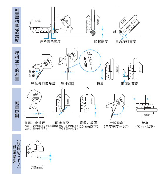 焊接加工的必備工具!是焊料量規(guī)。一個量規(guī)可以測量焊接時焊料的隆起高度。直角焊料厚度、腳長等!WG-2(L)可以測量隱形溝槽。