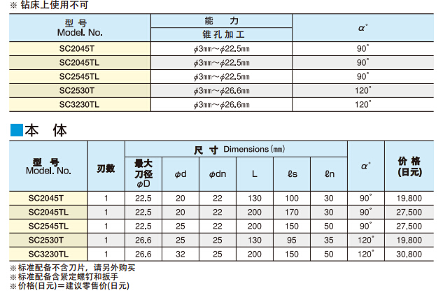 最大刀徑22.5mm(90°),26.6mm(120°)