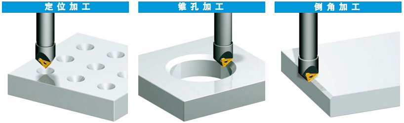 中心鉆兼倒角刀,節(jié)省了工具更換裝置的工序, 提高生產(chǎn)效率。