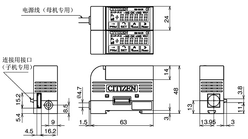 ![]() | 1臺母機可連接8臺子機,可對全部的顯示器進行統(tǒng)一控制 | ![]() | 顯示組件為可拆分式,可以從本體上拆下來裝配到設(shè)備的控制面板上,可進行緊密配置以節(jié)省空間。 ※控制面板安裝時,需選用組合套件(EM-SA1-DPM) |