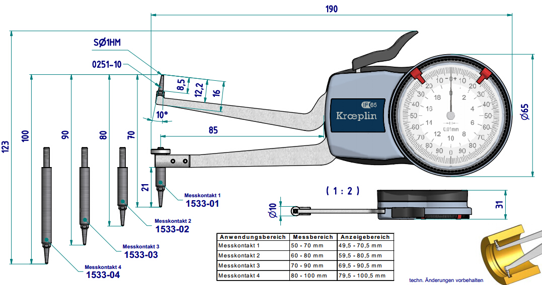 德國(guó)KROEPLIN指針式內(nèi)徑卡規(guī)H2M50
