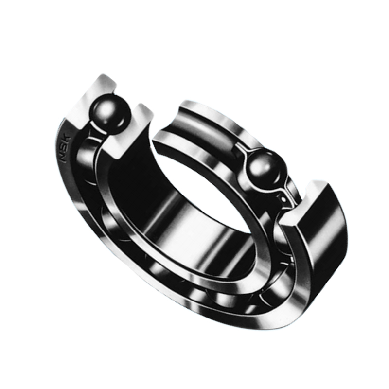 (1)滿球軸承,由于在內(nèi)圈及外圈上設(shè)計(jì)了填球口,可比深溝球軸承多裝球。因?yàn)橛刑钋蚩?,所以不適于軸向載荷大的用途。另外使用軸承時(shí),盡可能將外圈的填球口位置只作為非載荷圈。保持架為沖壓保持架。